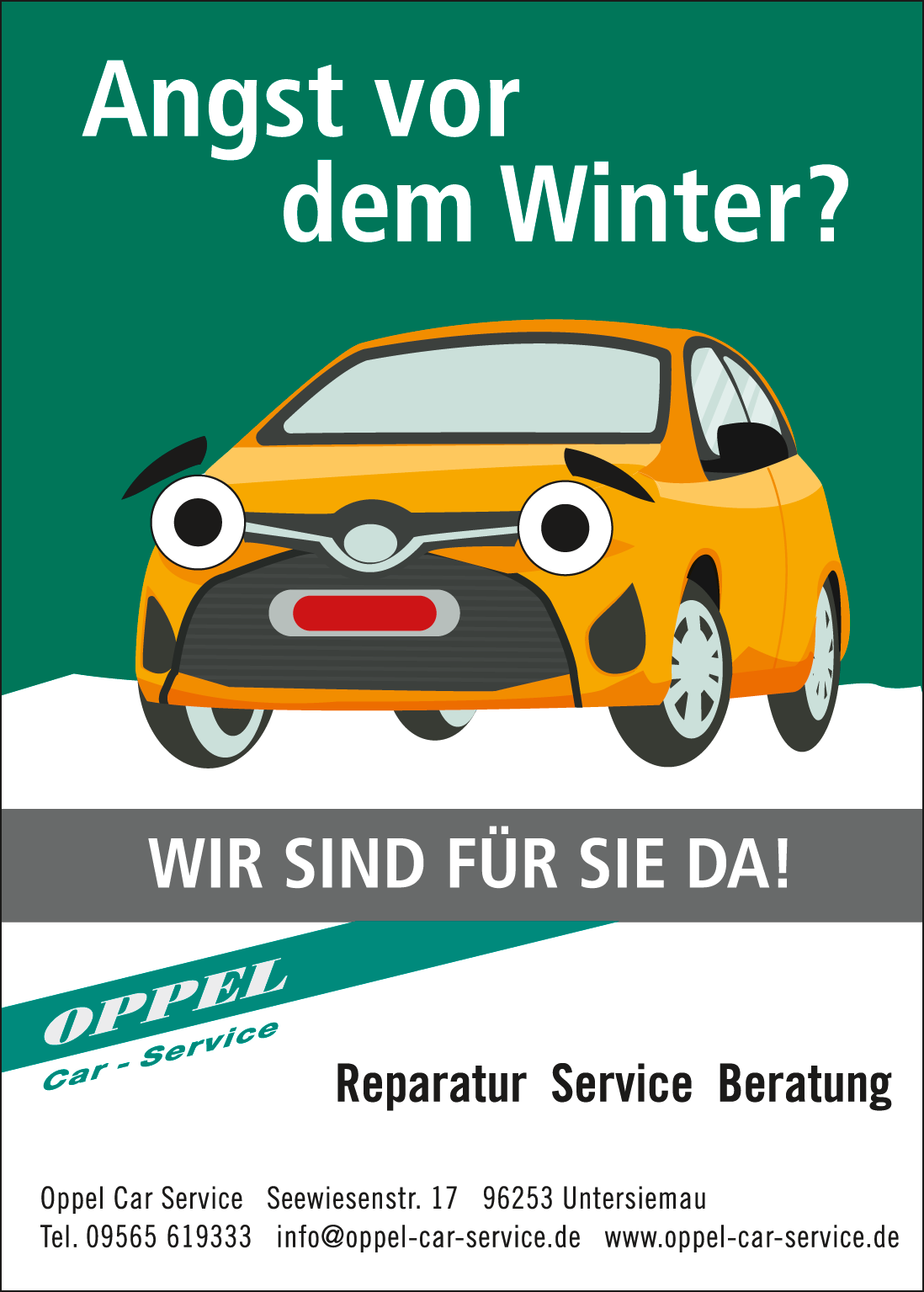 Saisonale Werbung für die Kfz-Werkstatt Oppel