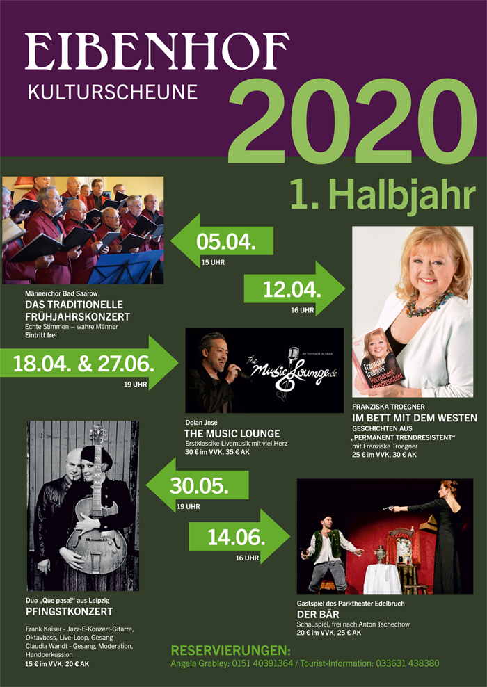 Programm-Plakat für die Kulturscheune auf dem Eibenhof Bad Saarow